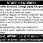 Army Public School & College APS&C Risalpur Jobs 2025 Army Public School & College APS&C, Government Jobs Risalpur, Pakistan Full Time