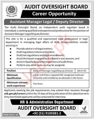 Assistant Manager Legal & Deputy Director Jobs At Audit Oversight Board