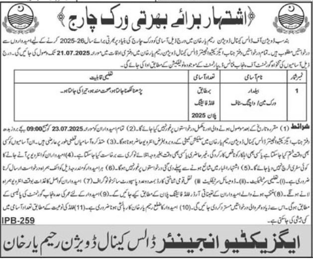 Canal Division Rahim Yar Khan Jobs