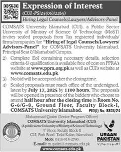 Comsats University is inviting applications for the following positions as per the job advertisement published in the daily The News Newspaper on 22 June, 2025 for Islamabad, Pakistan: