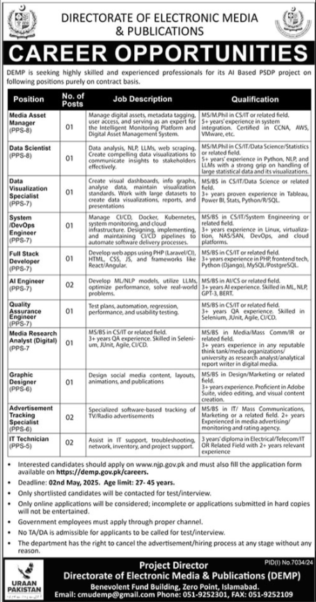 Directorate Of Electronic Media & Publications Islamabad Jobs
