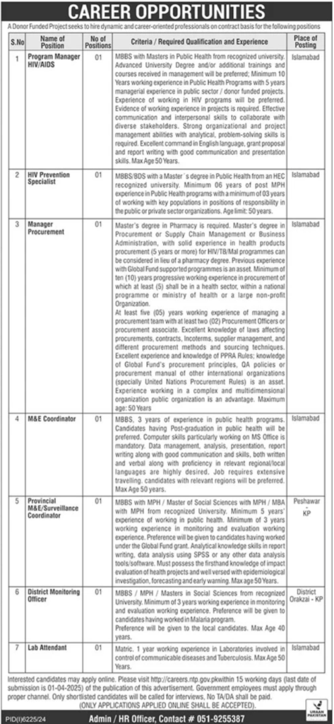 Donor Funded Project Islamabad Jobs Annoucement 2025