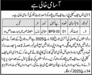 DSF Company PAF Peshawar, Pakistan, invites applications for the following vacant post as per the advertisement published on 2 March, 2025, in Mashriq Newspaper: