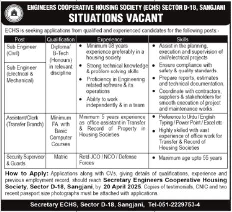 Engineers Cooperative Housing Society Sangjani Jobs
