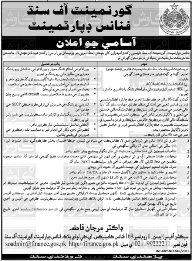 Finance Department Karachi Jobs 2025