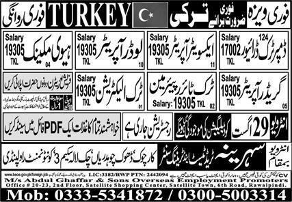 Sehreena Trade Test and Training Center is inviting applications for multiple positions as per the advertisement published in the Express Newspaper on 23 August, 2025 for Istanbul, Ankara, Turkey.