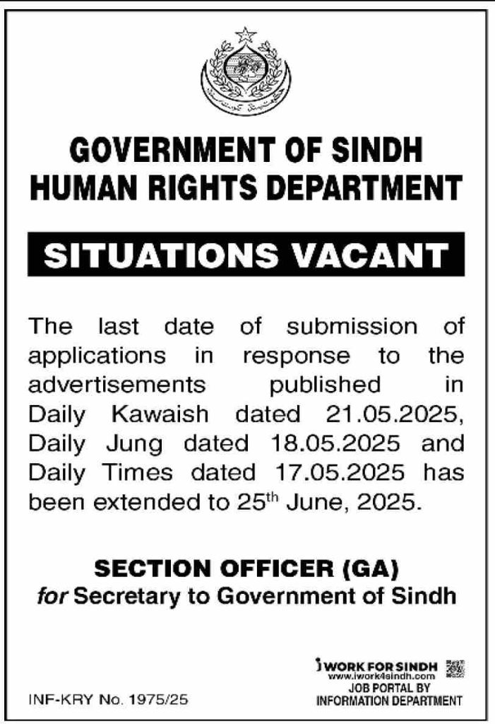 Human Rights Department (HRD), Islamabad, invites applications for the following vacant positions as per the job advertisement published in the Dawn Newspaper on 16 June, 2025: