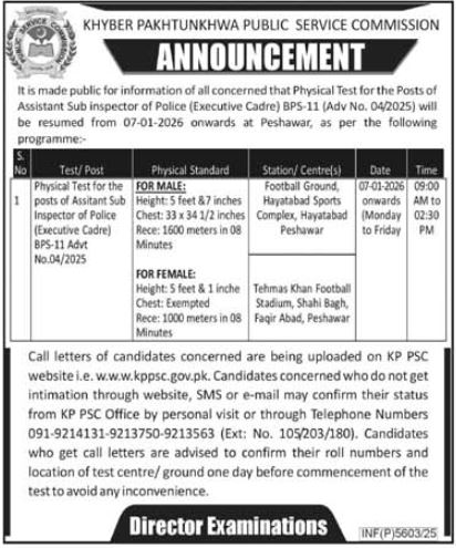 Khyber Pakhtunkhwa Public Service Commission (KPPSC) is inviting applications for the following positions as per the advertisement published in the daily Mashriq Newspaper dated 01 January, 2026 for Peshawar, KPK, Pakistan: