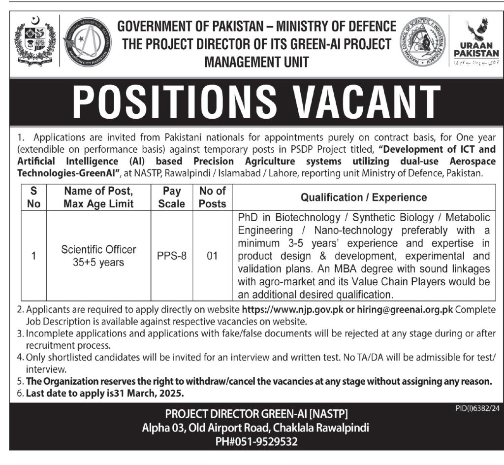 Latest Ministry of Defence Science Posts Rawalpindi 2025