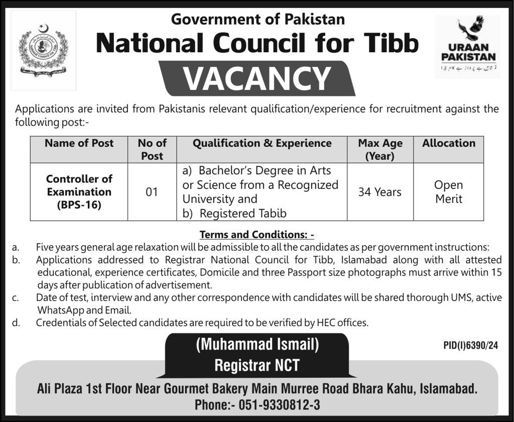 Latest National Council for Tibb Management Posts Islamabad 2025