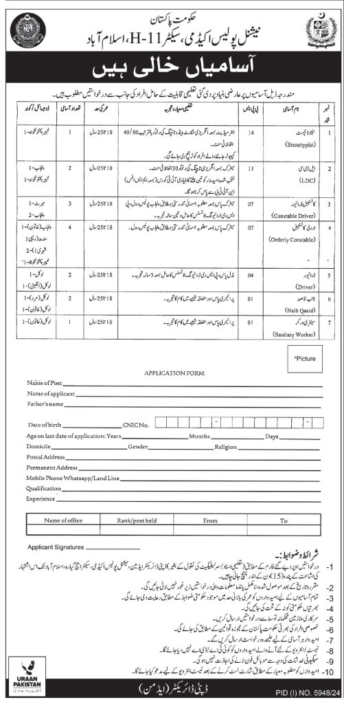 National Police Academy NPA H-11 Islamabad Jobs 2025