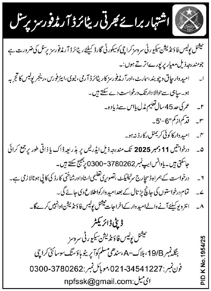 National Police Foundation Security Services latest Government Security jobs and others can be applied till December 11, 2025 or as per closing date in newspaper ad. Read complete ad online to know how to apply on latest National Police Foundation Security Services job opportunities.