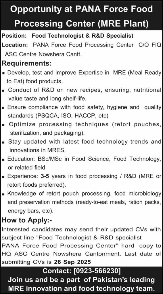 PANA Force Food Processing Center Nowshera Cantt Job 2025