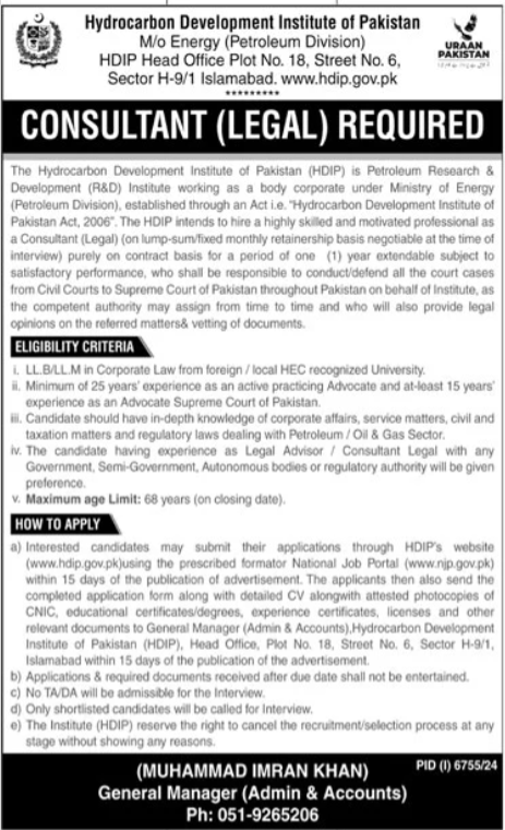 Latest Hydrocarbon Development Institute of Pakistan Legal Posts – Islamabad 2025