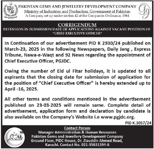 Interested candidates should apply for the latest Government Executive jobs at Pakistan Gems and Jewelry Development Company by 16 April, 2025, or as per the closing date mentioned in the newspaper ad. Read the complete ad online to learn more about the application process and eligibility requirements.
