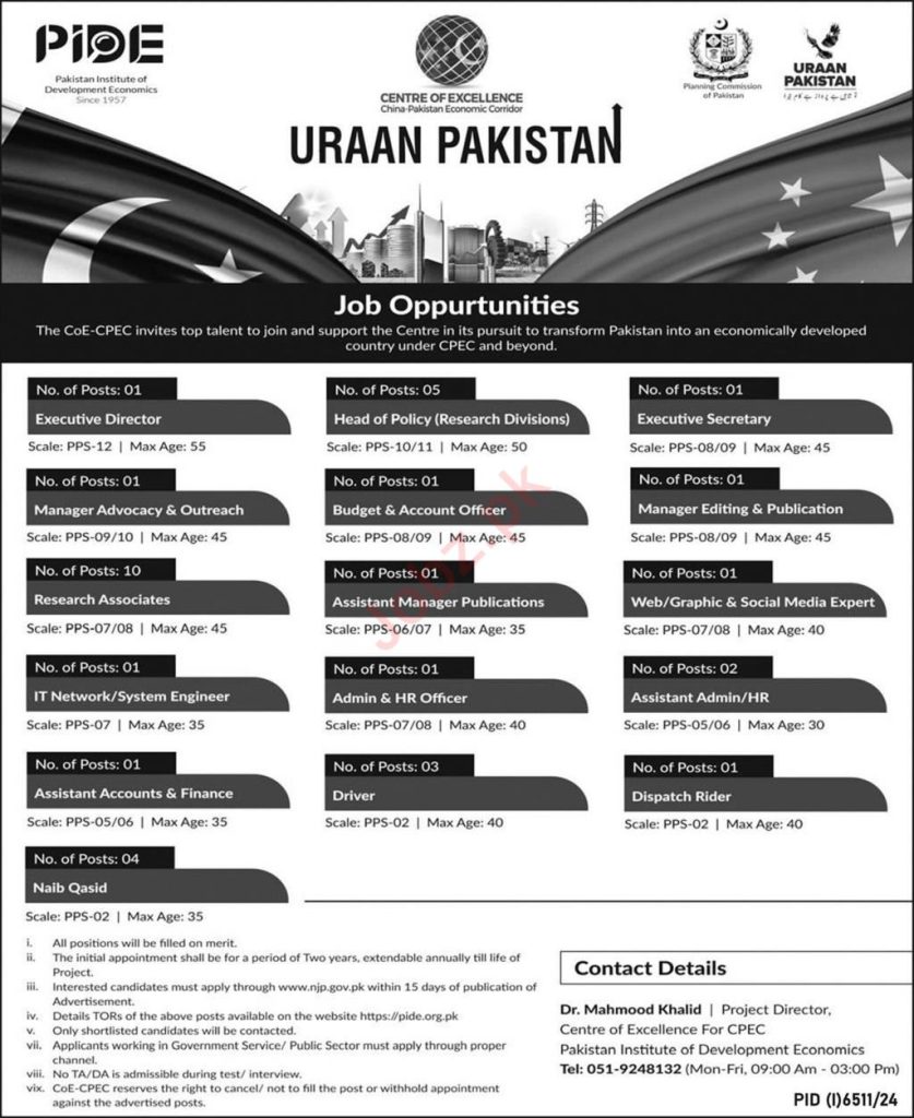 Pakistan Institute of Development Economics (PIDE), Islamabad, invites applications for the following positions, as advertised in Express Newspaper on 23 March, 2025: