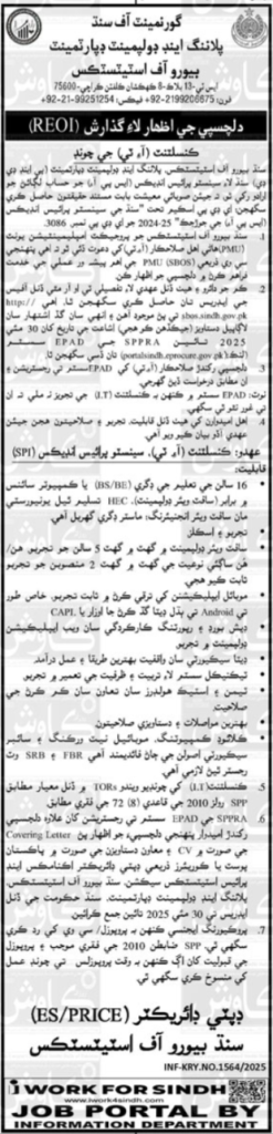 Planning and Development Department is inviting applications for the following position as per the job advertisement published in the daily Kawish Newspaper on 19 May, 2025 for Karachi, Pakistan: