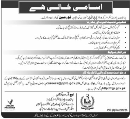 Private Power and Infrastructure Board (PPIB), G-8/1 Islamabad, is inviting applications for the above position as per the advertisement published in Khabrain Newspaper on 14 July, 2025. Candidates with qualifications of Middle, Matric, or Intermediate are encouraged to apply.