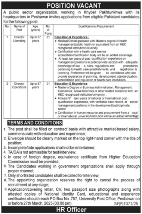 Latest Public Sector Organization Management Posts Peshawar 2025