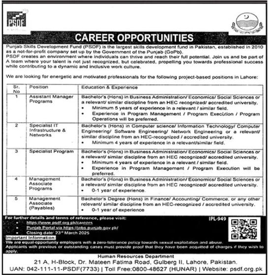 Punjab Skills Development Fund PSDF Lahore Jobs 2025
