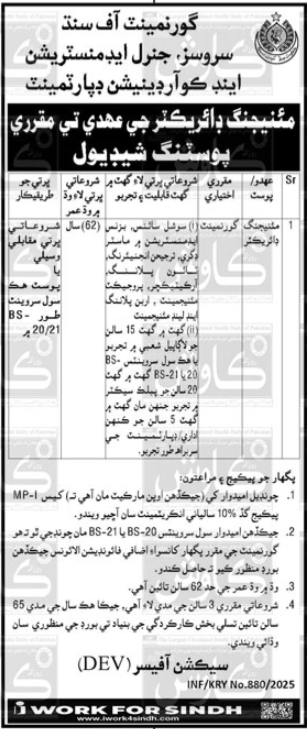 Latest Services General Administration & Coordination Department Management Posts Karachi 2025