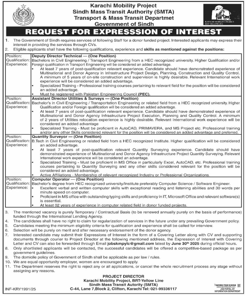 Sindh Mass Transit Authority SMTA Karachi Jobs 2025
