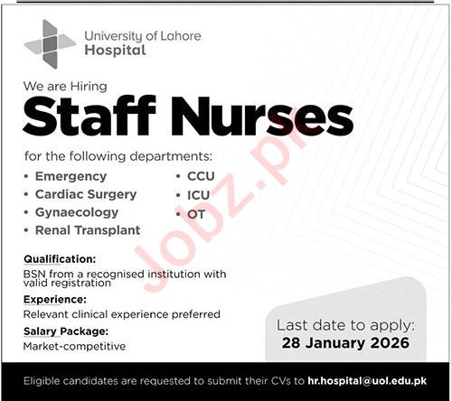 Staff Nurse Jobs At University Of Lahore Hospital