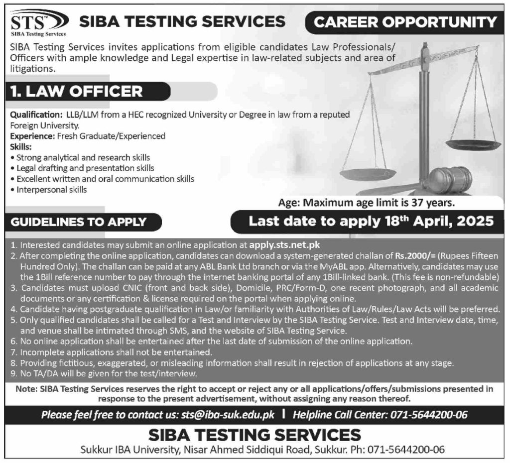 Interested candidates can apply for the latest Government Legal jobs at Sukkur IBA University before 18 April, 2025, or as per the closing date mentioned in the newspaper ad. Read the complete ad online via SIBA for application details.