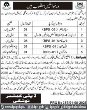 Deputy Commissioner Office Nushki invites applications for the above positions as per the job advertisement published in Jang Newspaper on 2 August, 2025. Candidates with Primary, Middle, or Matric education are eligible to apply.
