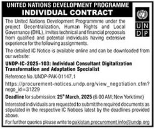 The United Nations Development Programme (UNDP) is inviting applications for the following position, as per the job advertisement published in The News on 13 March, 2025: