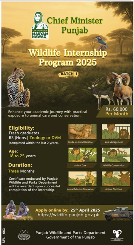 Punjab Wildlife & Parks Department, Lahore, invites applications for the following position as advertised in The News on 17 April, 2025: